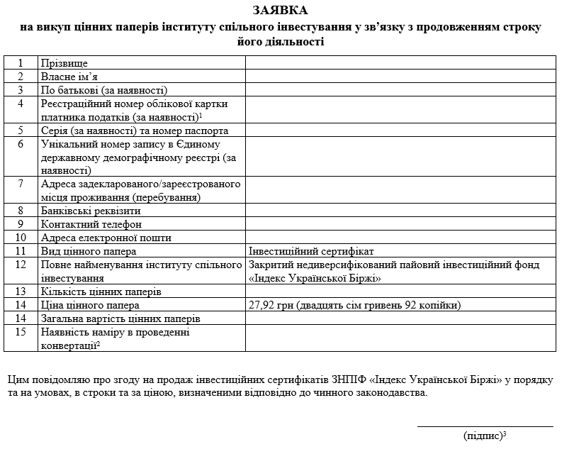 на викуп цінних паперів інституту спільного інвестування у зв’язку з продовженням строку його діяльності
